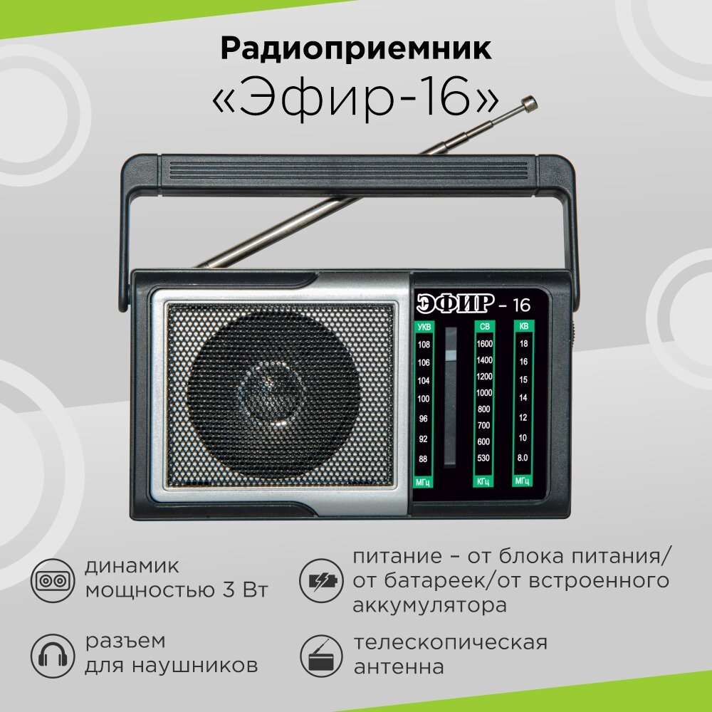 Отзывы на Радиоприемник "Эфир-16", УКВ 88-108МГц, СВ 530-1600КГц, КВ, 2*AA, акб 500mAч