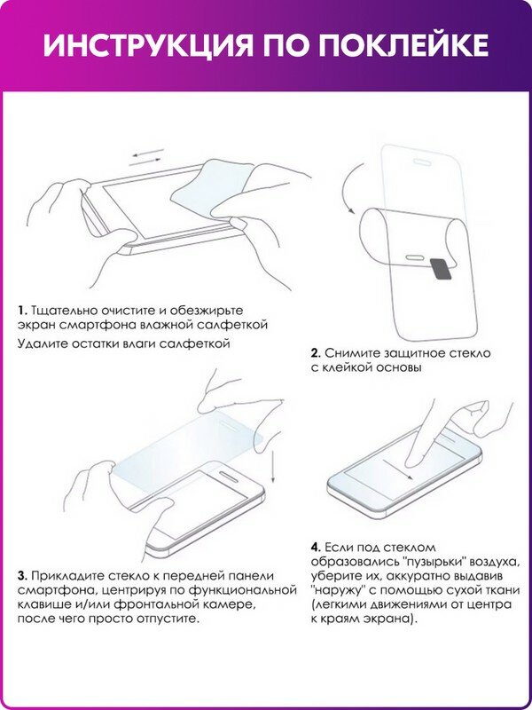 | Подробная комплектация | защитное стекло - 1 шт; салфетки для стекол - 2 шт; стикеры для удаления пыли - 1 шт |