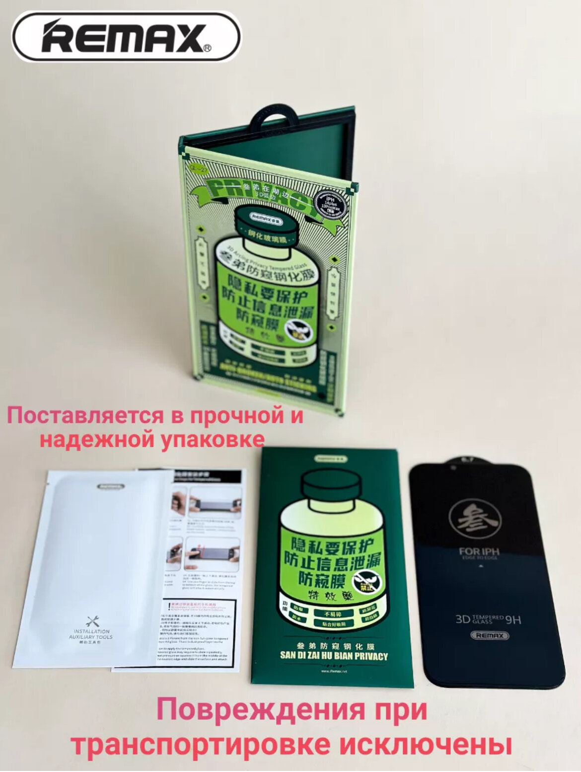 Защитное стекло Айфон 16/15 Remax, для iPhone 15/16, 3D, антишпион, глянцевое, олеофобное, черное информация: