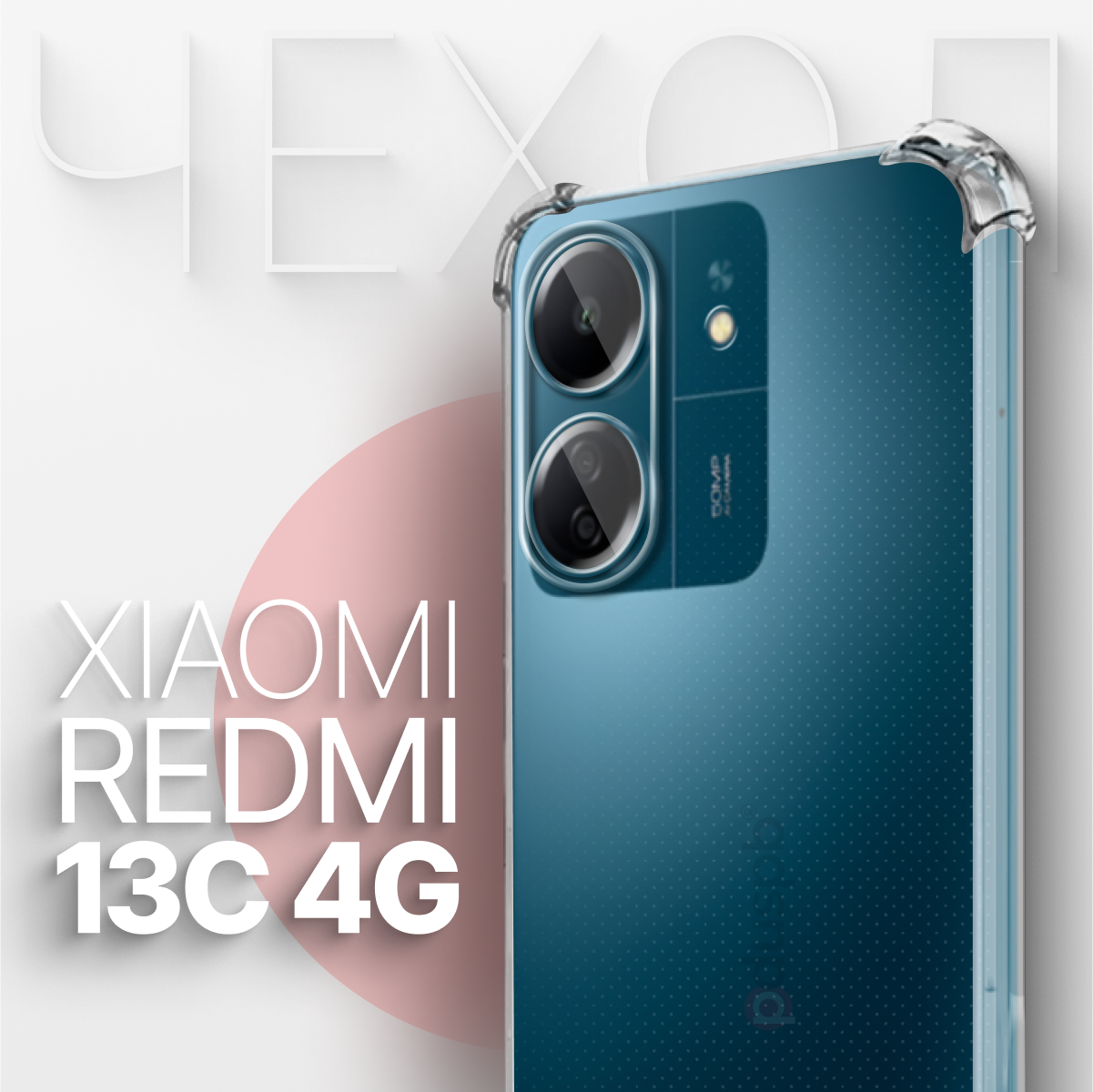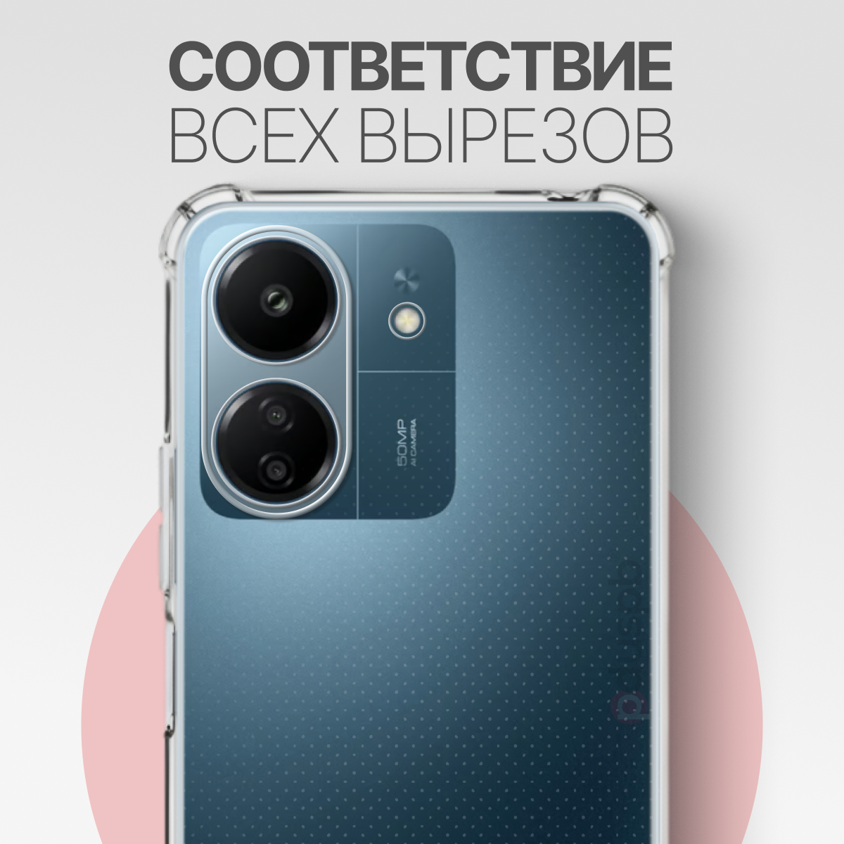 Прозрачный чехол для Xiaomi Redmi 13C 4G / противоударный силиконовый с защитой камеры и углов на Ксиоми Редми 13Ц 4 джи информация: