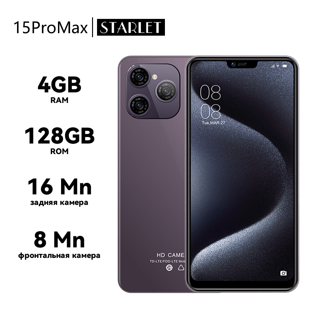 STARLET смартфон 4/128 ГБ 15 PRO MAX , Dual nano SIM, Мобильные телефоны, Разблокировка по лицу,2280*1080, Smart phone информация: