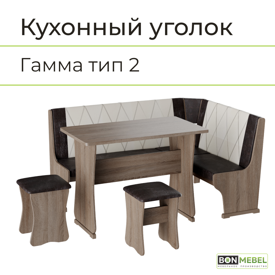 10 цен на Кухонный уголок BONMEBEL Гамма Тип 2, ЛДСП Дуб Сонома трюфель/КЗ Шоколад/Бежевый, стол, диван, табуреты