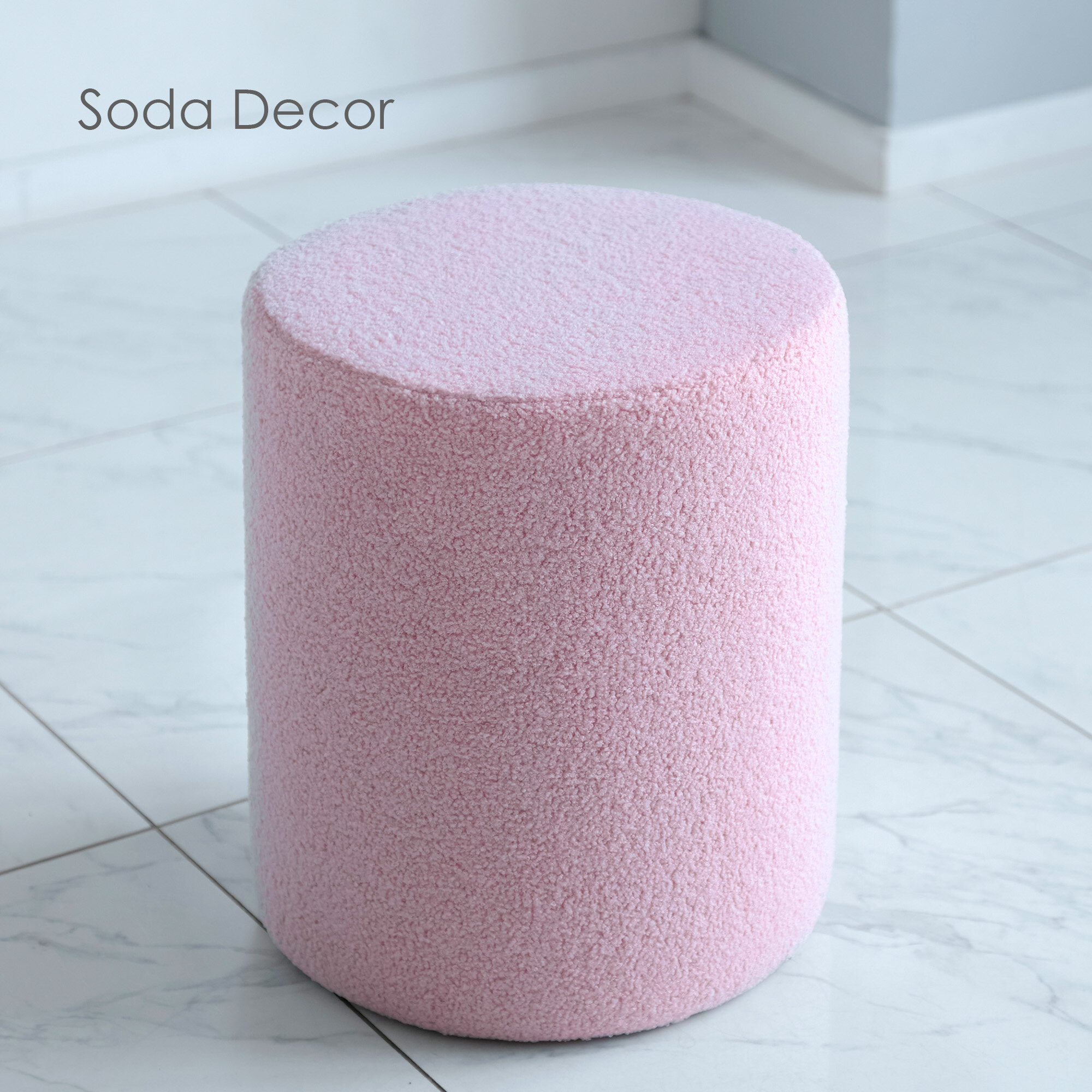 Пуфик в прихожую и спальню, для туалетного столоки, букле, барашек, soda decor, розовый информация: