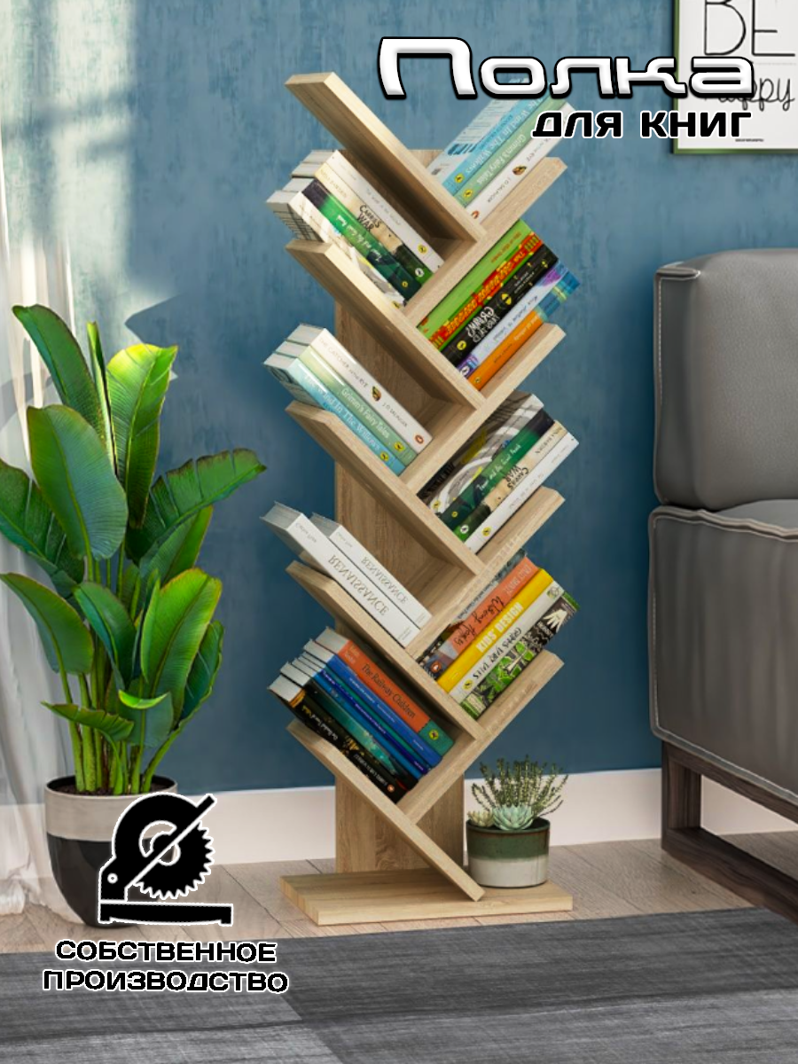 Полка напольная деревянная для книг от бренда "Мебель от Прудникова", 114 см, дуб сонома 3 299 ₽