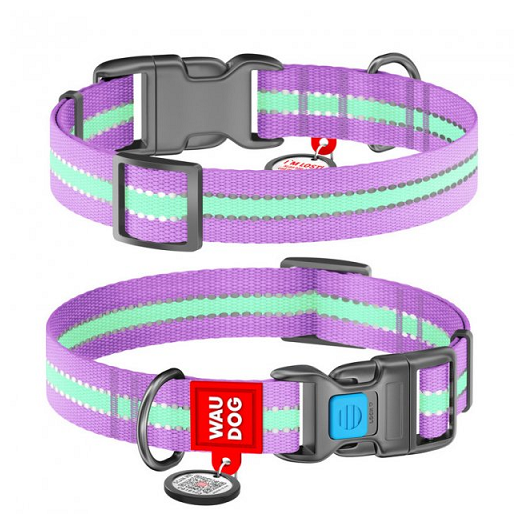 Отзывы на Ошейник WAUDOG Nylon для собак с QR-паспортом, светоотражающий, Ш 25мм, Дл 31-49, фиолетовый