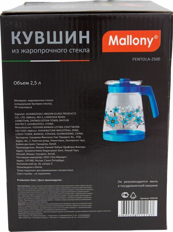 Кувшин Mallony Pentola-2500, 2,5 л, жаропрочное .