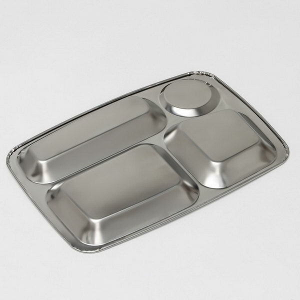 10 цен на Поднос, 29x20.5x2 см, 4 секции, нержавеющая сталь, серебристый