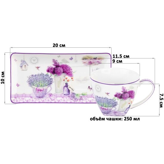 10 цен на Набор Elan Gallery чашек с блюдцами для десерта Лаванда 250 мл, 2 шт
