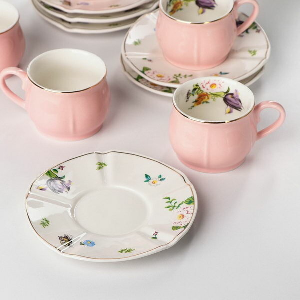 10 цен на Сервиз керамический кофейный "Сирена", 12 предметов: 6 чашек 100 мл, 6 блюдец 12 см, цвет розовый