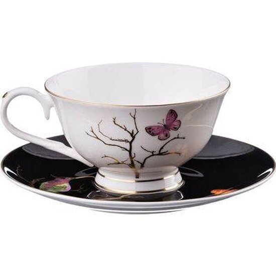 Чайная пара из фарфора : чашка 200 мл + блюдце Lefard "Райские Птицы"