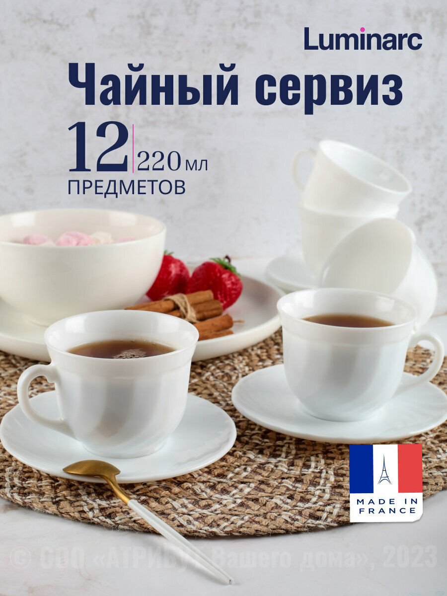 Набор чайный Luminarc "Trianon", 12 элементов, ударопрочное стекло, белый информация:
