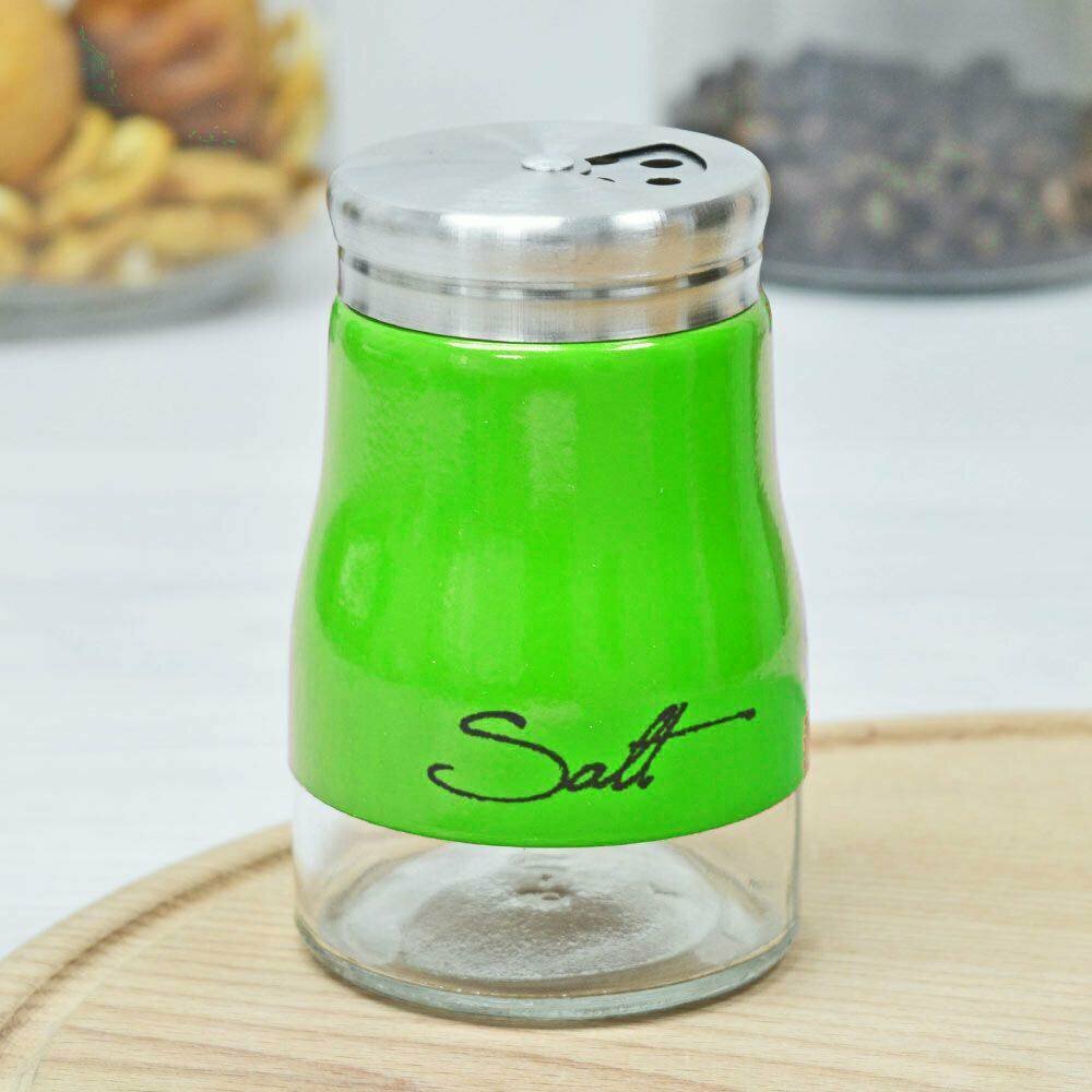 Солонка для соли и специй стеклянная с металлическим ободком, 140 мл, салатовый информация: