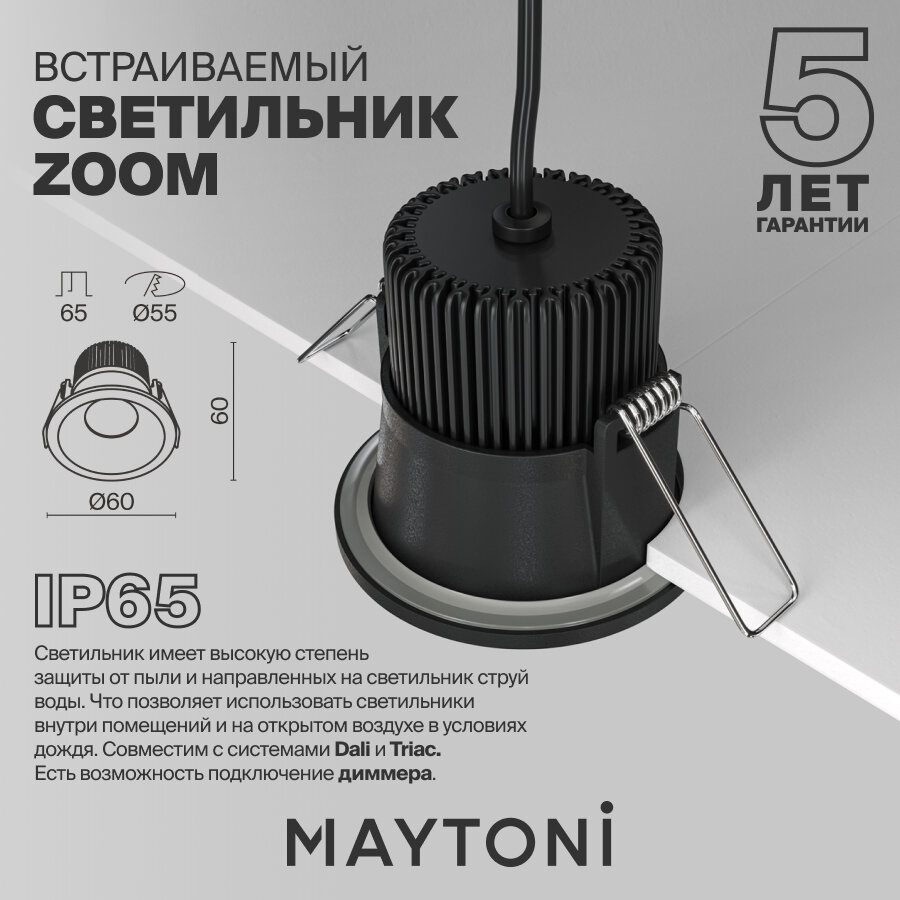Встраиваемый светильник Maytoni Technical черный DL034-01-06W4K-D-B информация: