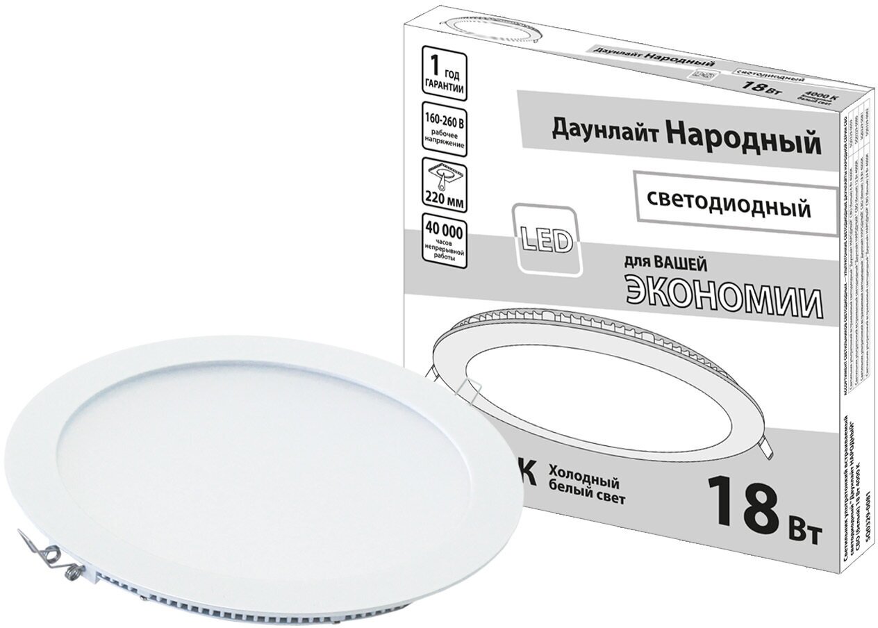 10 цен на Светильник LED 18 W 6500К белый D=205х18 СВО Даунлайт народный TDM 0329-0243