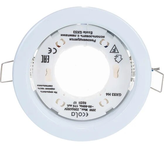 Отзывы на Ecola GX53 H4 светильник(2 штуки) БЕЛЫЙ встраиваемый (38x106мм) потолочный точечный - для натяжного потолка