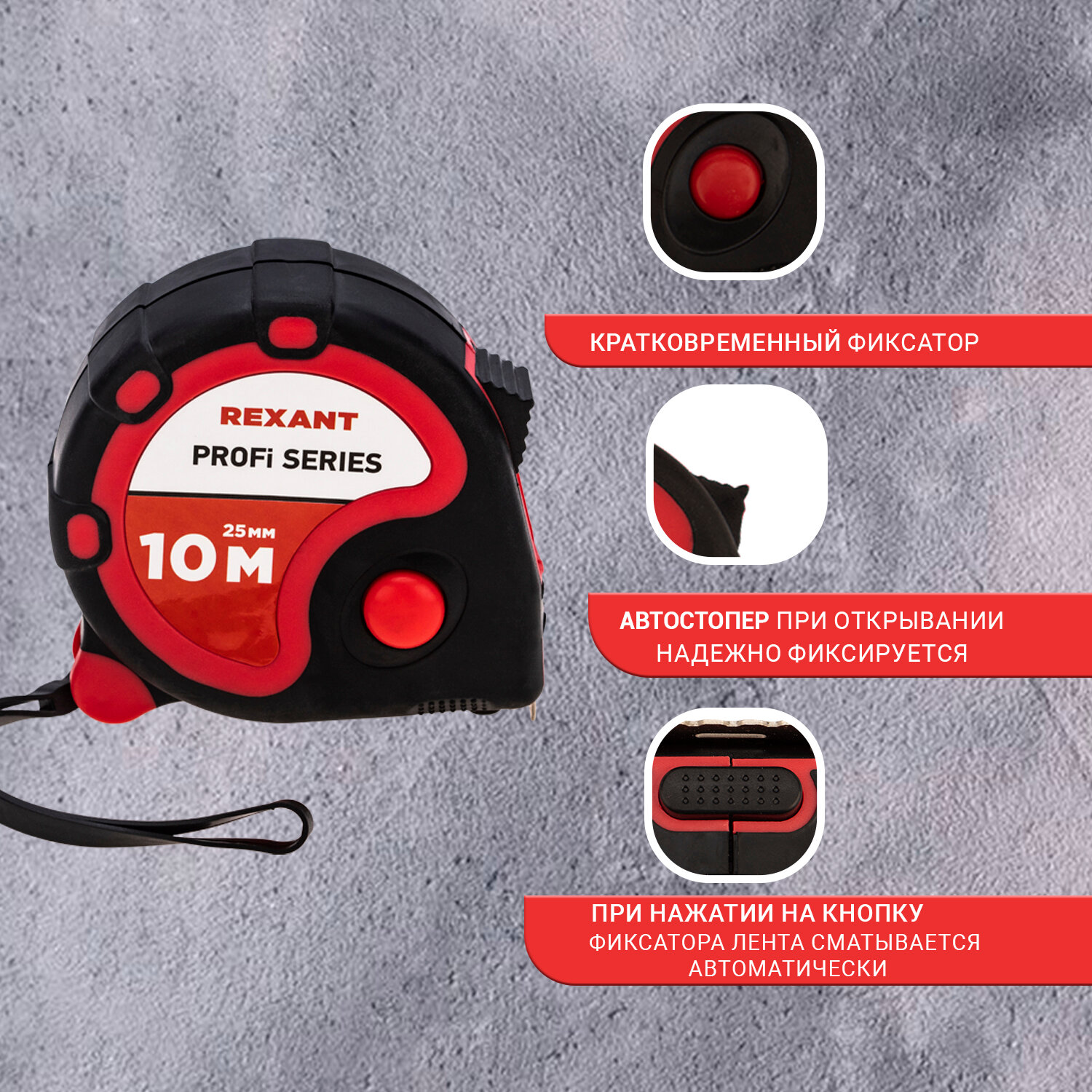 10 цен на Рулетка "Профи" с клипсой для крепления на пояс, 25 мм х 10 м REXANT