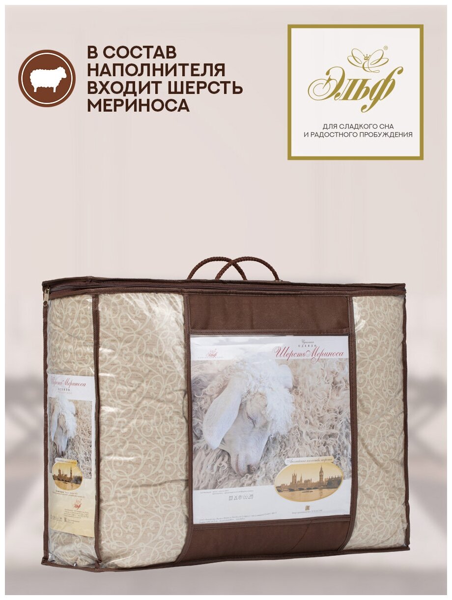Одеяло "Эльф Меринос", 200х215 см, всесезонное, плотность 220 г/м2, наполнитель - шерсть информация: