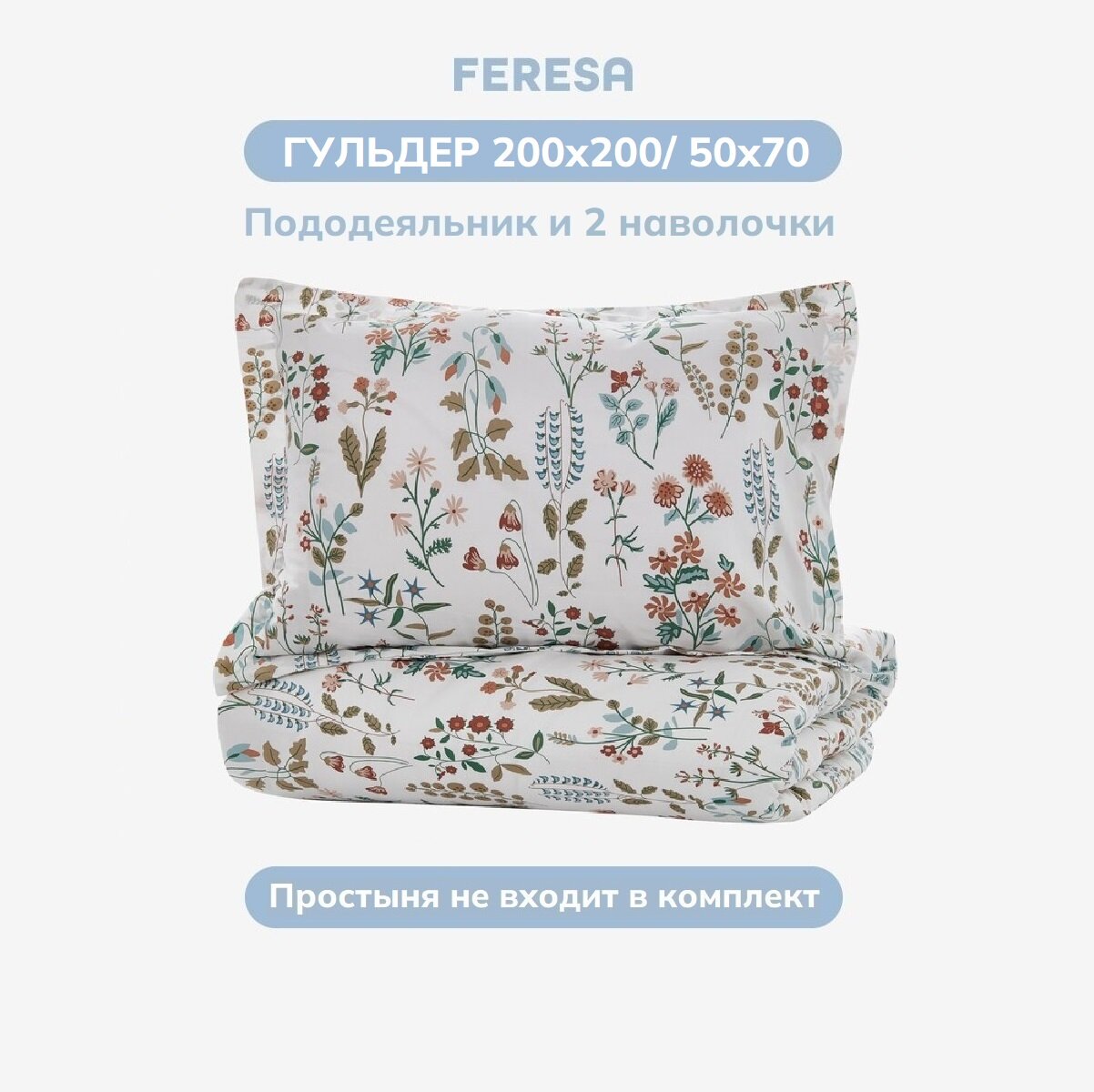 Постельное белье 1,5 сп сатин Feresa Hygge гульдер/LUKTJASMIN, пододеяльник 150х200, наволочки 50x70 (1 шт), аналог икеа 4 268 ₽
