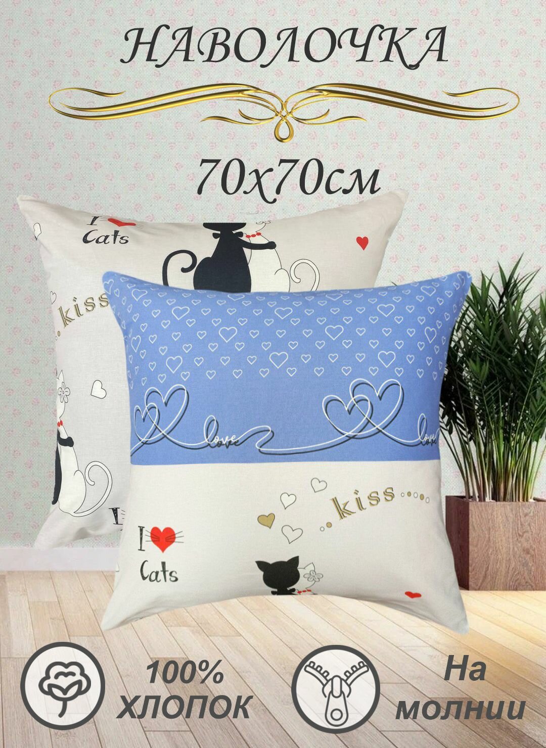 Наволочка 2шт на молнии 70х70 см Сказка "Kitties", ткань перкаль, 100% хлопок