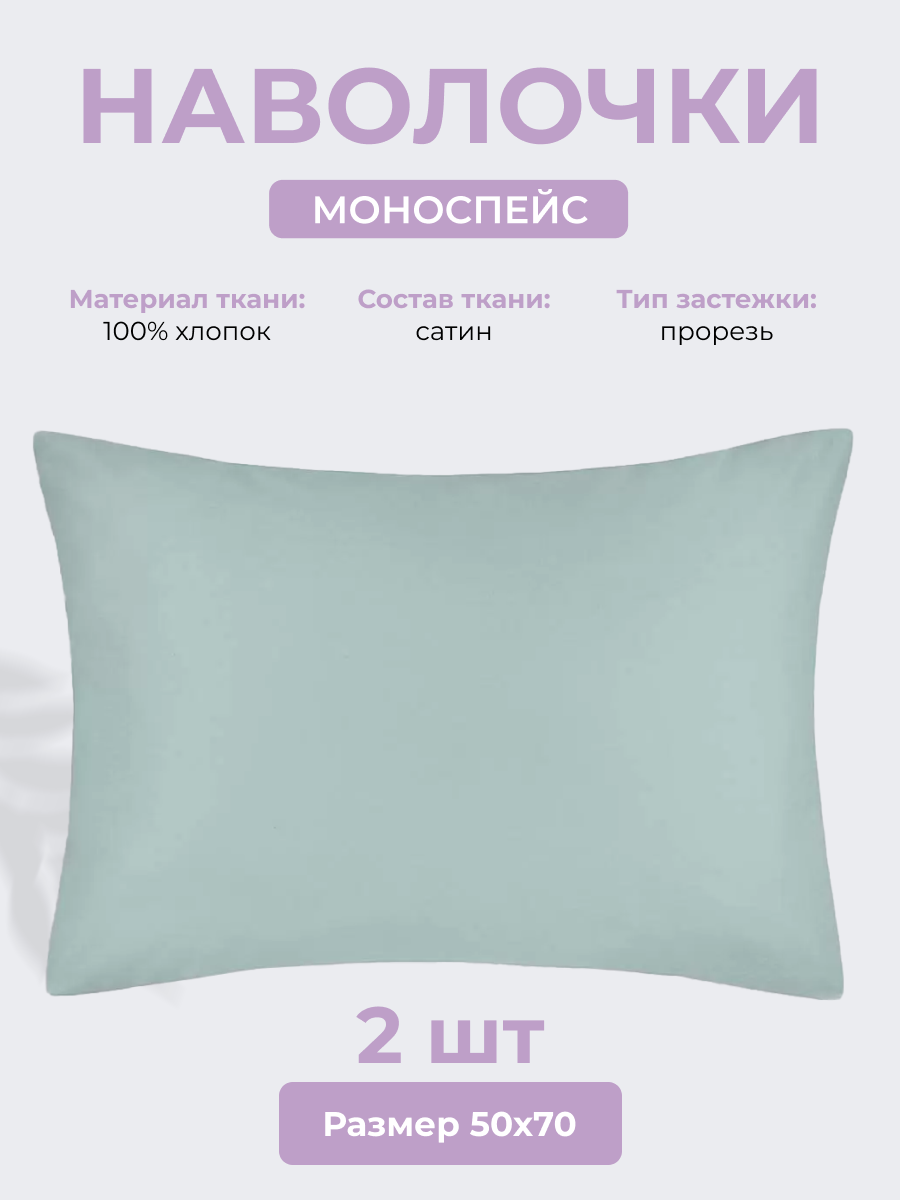 10 цен на Наволочки 50х70 см Моноспейс, комплект из 2х шт, однотонные (аналог икеа), Нежно-голубой, 100% хлопок, сатин, Ecotex