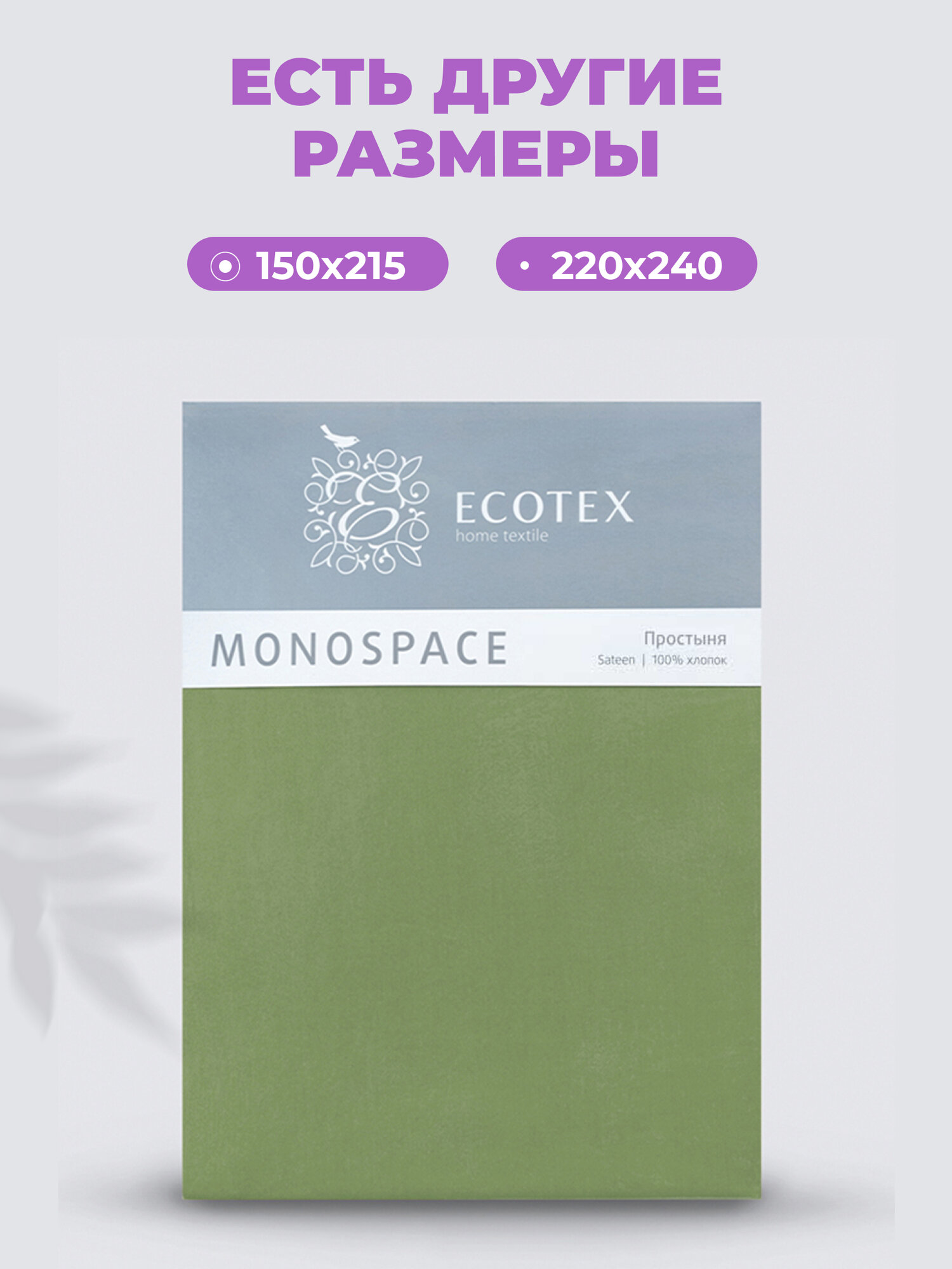 Простыня однотонная Моноспейс (аналог икеа), Зеленый, Евро, 220x240 ,100% хлопок, сатин, Ecotex информация: