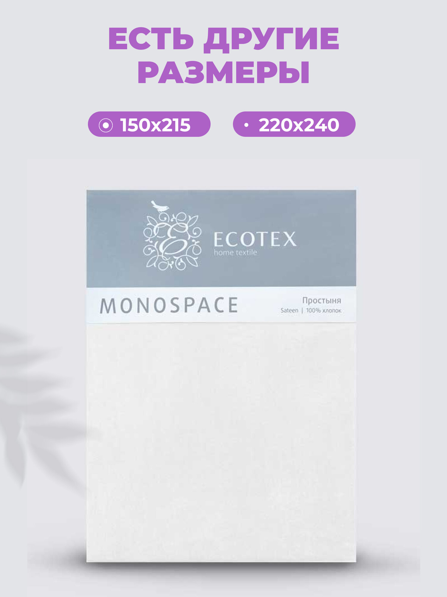 Простынь Ecotex "Моноспейс" Евро (220х240 см), сатин - 100% хлопок, белый