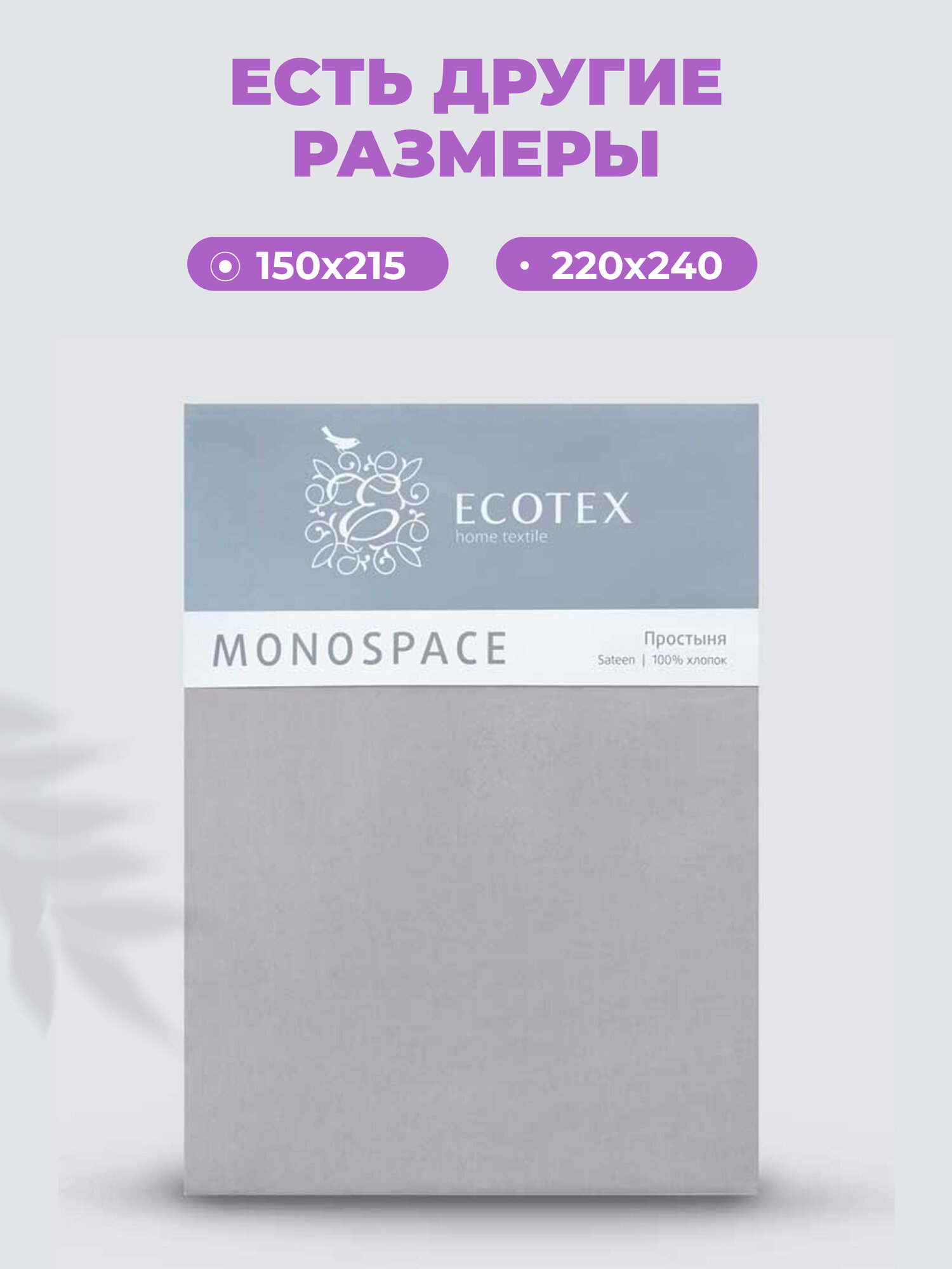 Простынь Ecotex "Моноспейс" 1,5-спальная (150х215 см), сатин - 100% хлопок, серый