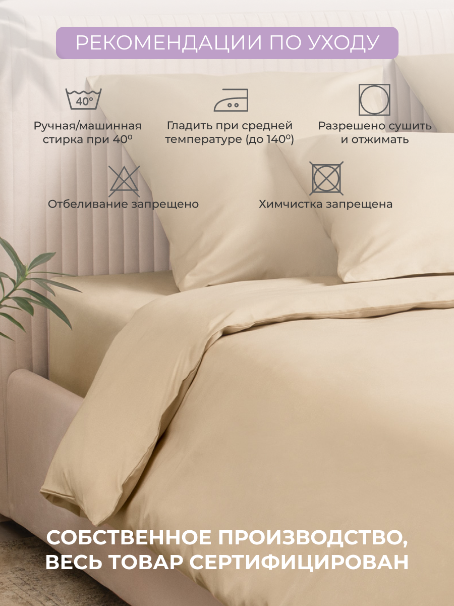 Простыня на резинке Моноспейс ECOTEX "Кремовый", 180*200*23, сатин 2 550 ₽