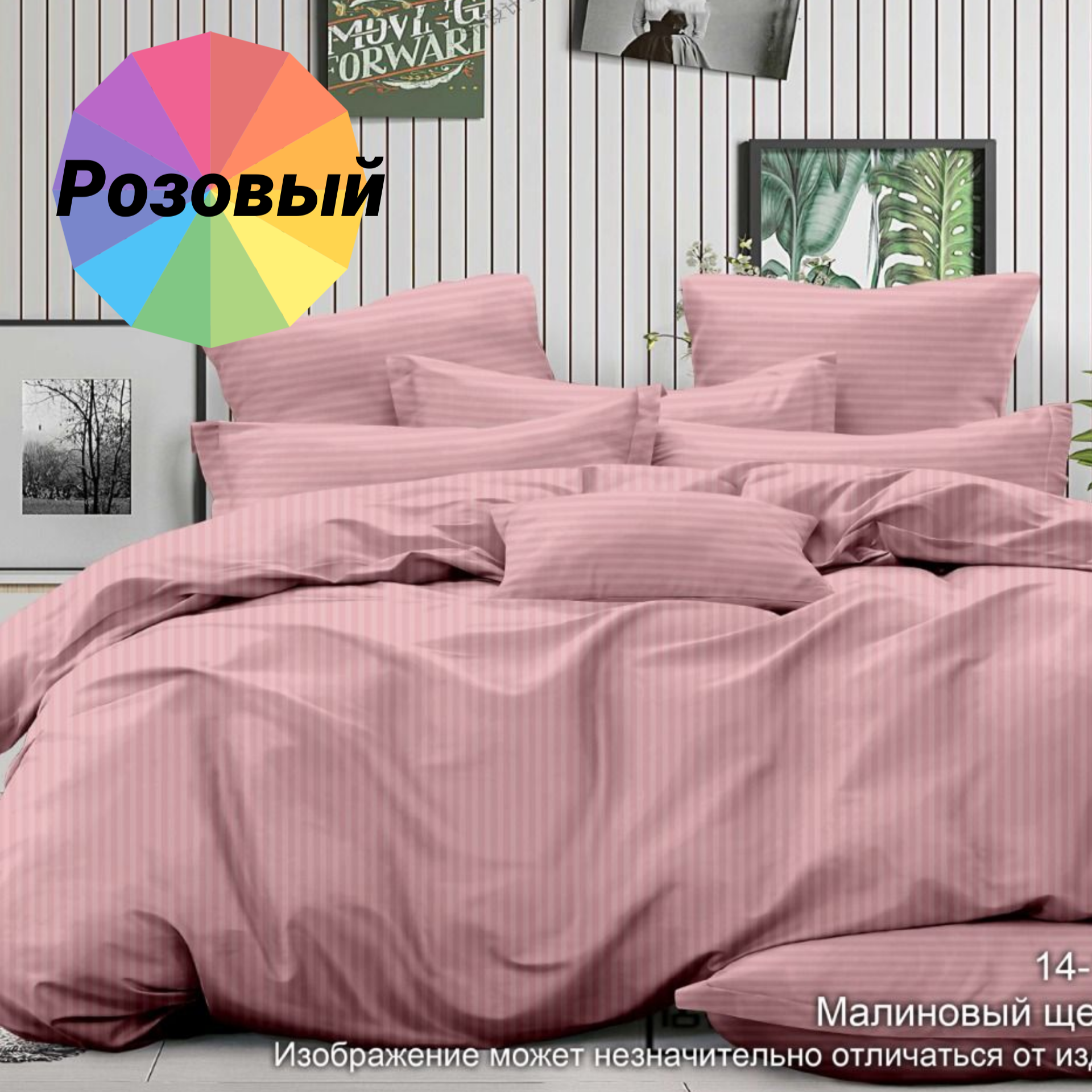 Простыня евро (200х220) страйп сатин розовый СПАЛЕНКА78, хлопок 100%