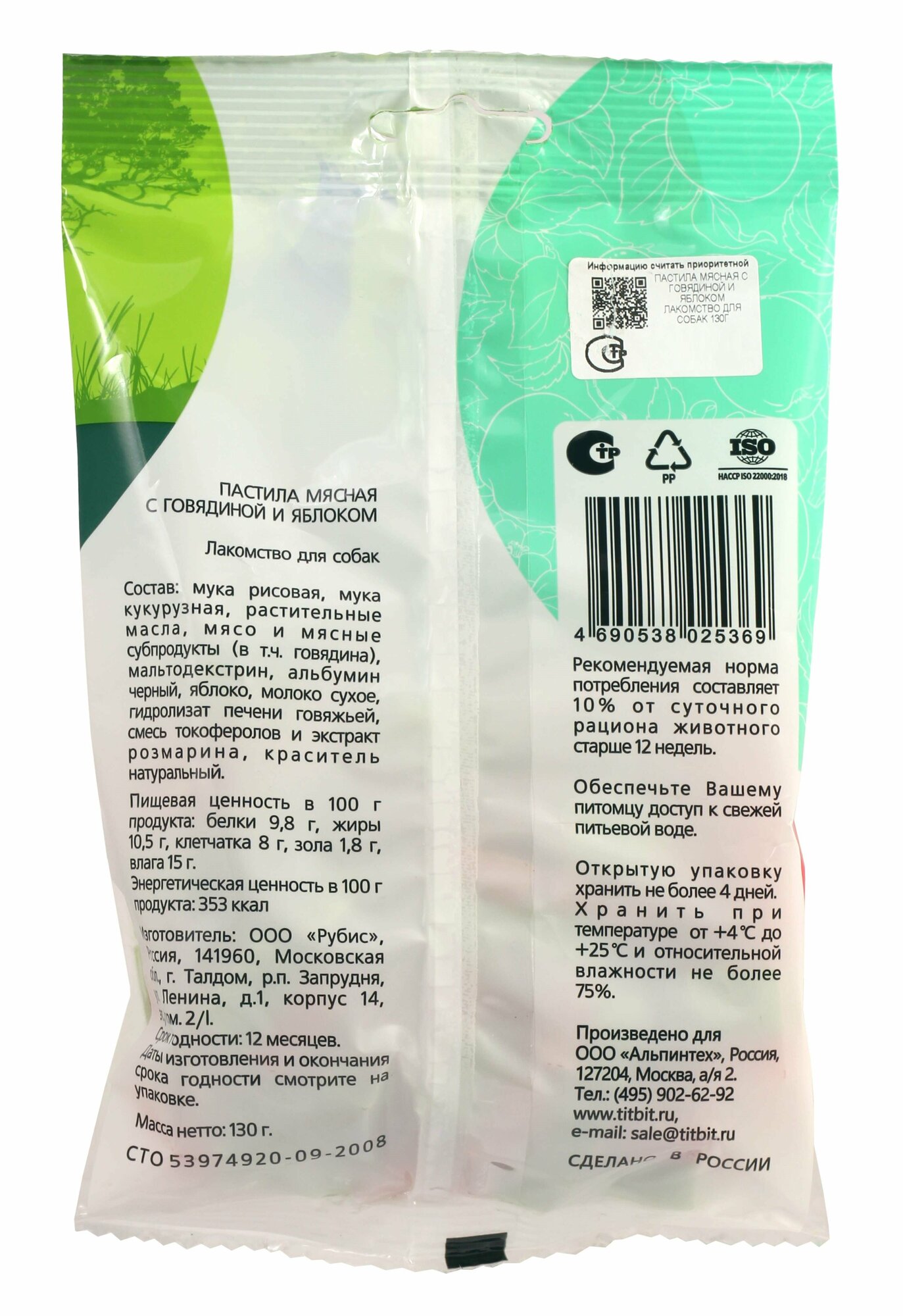 Лакомство TiTBiT Пастила мясная с говядиной и яблоком для собак (130г) информация: