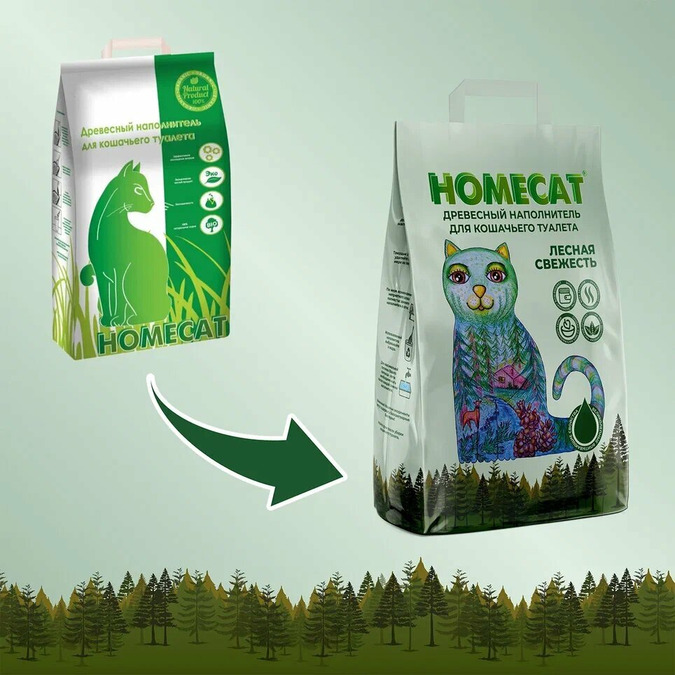 HOMECAT лесная свежесть наполнитель древесный для туалета кошек (16 + 16 л)