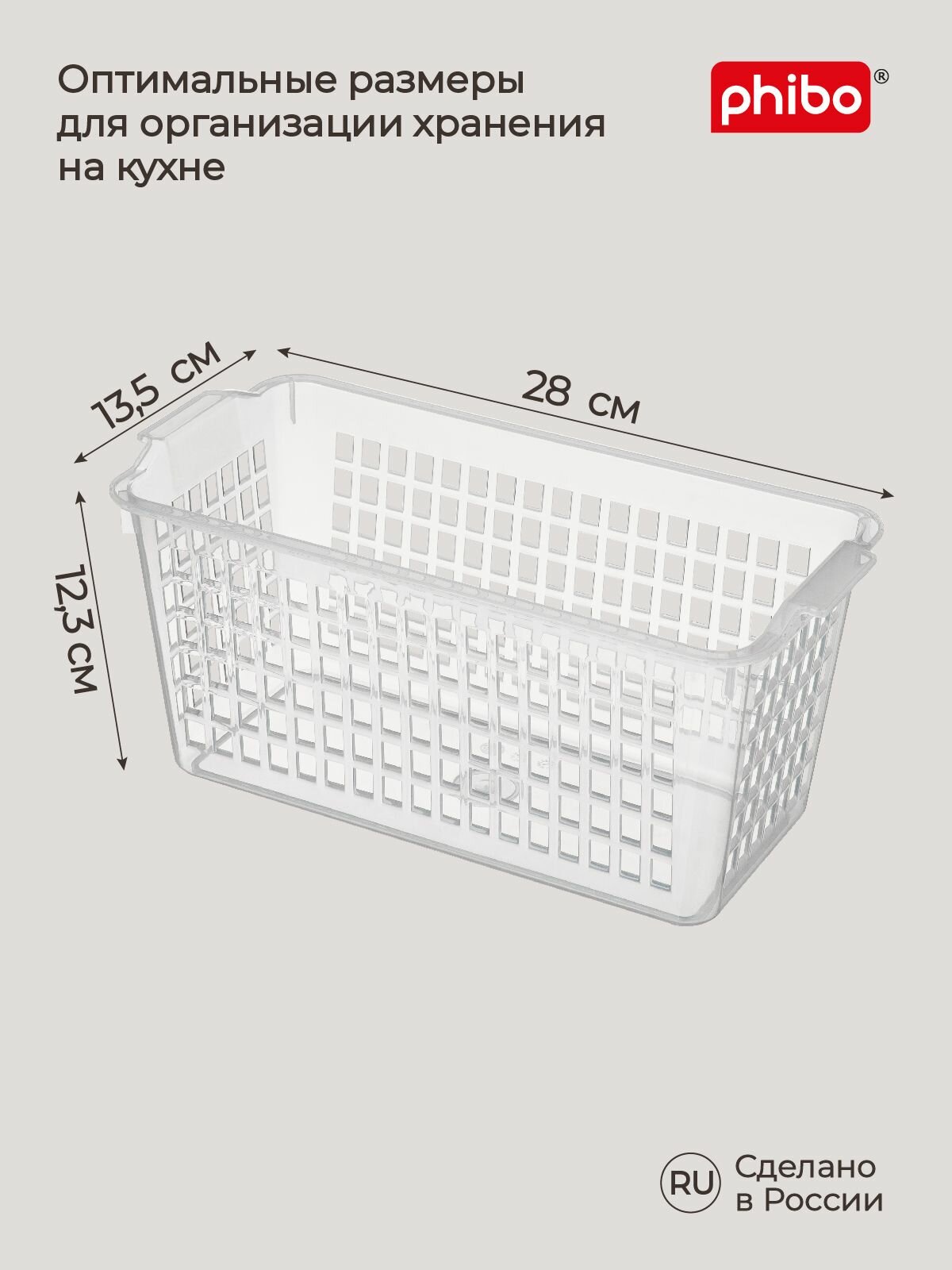 Корзинка универсальная для продуктов, мелочей 28х13,5х12,3 см, 3,2л, бесцветный