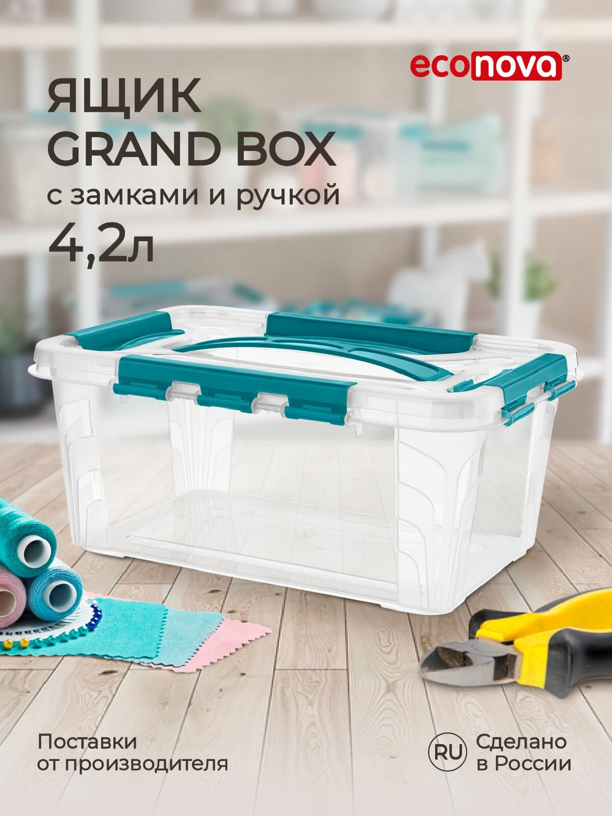 Ящик для хранения универсальный с замками и ручкой "GRAND BOX", 290х190х124мм, 4,2л (Голубой)