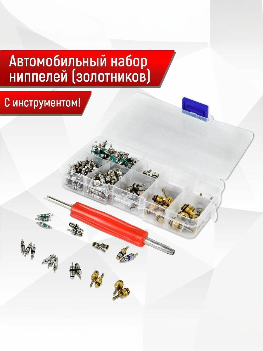 10 цен на Набор ниппелей (золотников) 134 шт, 7 видов, для сервисных заправочных портов автомобильных кондиционеров и авторефрижераторов.