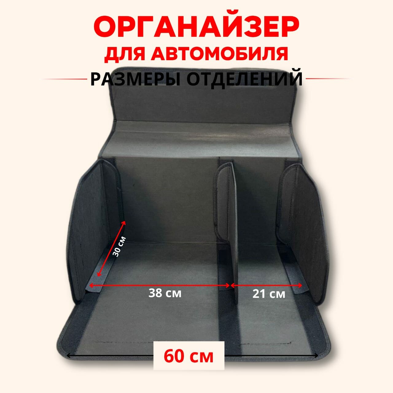 Органайзер для хранения для автомобиля/ Органайзер в багажник 60*30*35 квадрат бежевый строчка бежевая/корич 2 650 ₽