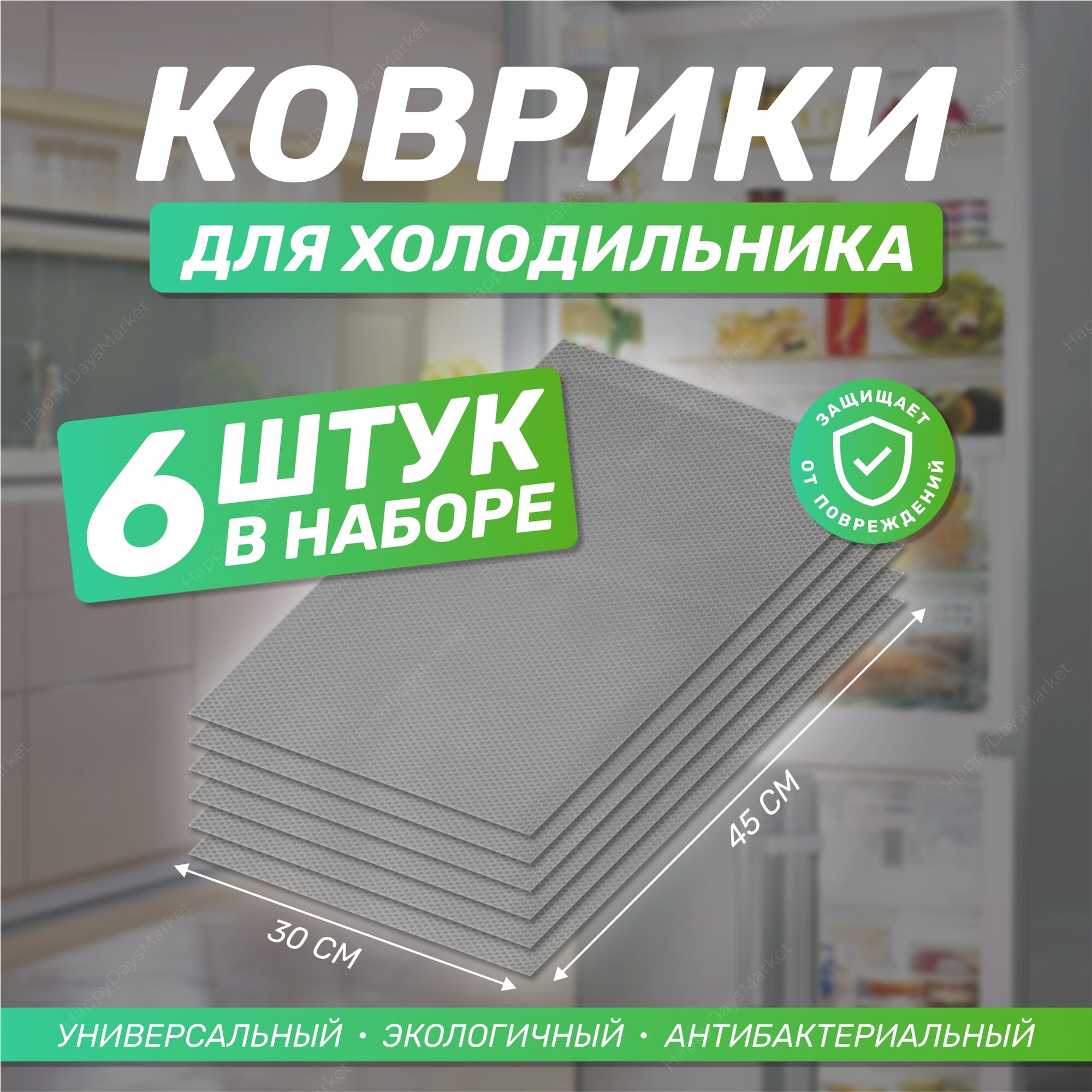 10 цен на Коврики силиконовые защитные для кухонных полок, ящиков, холодильника. Антибактериальные. 6шт. Серые полупрозрачные.