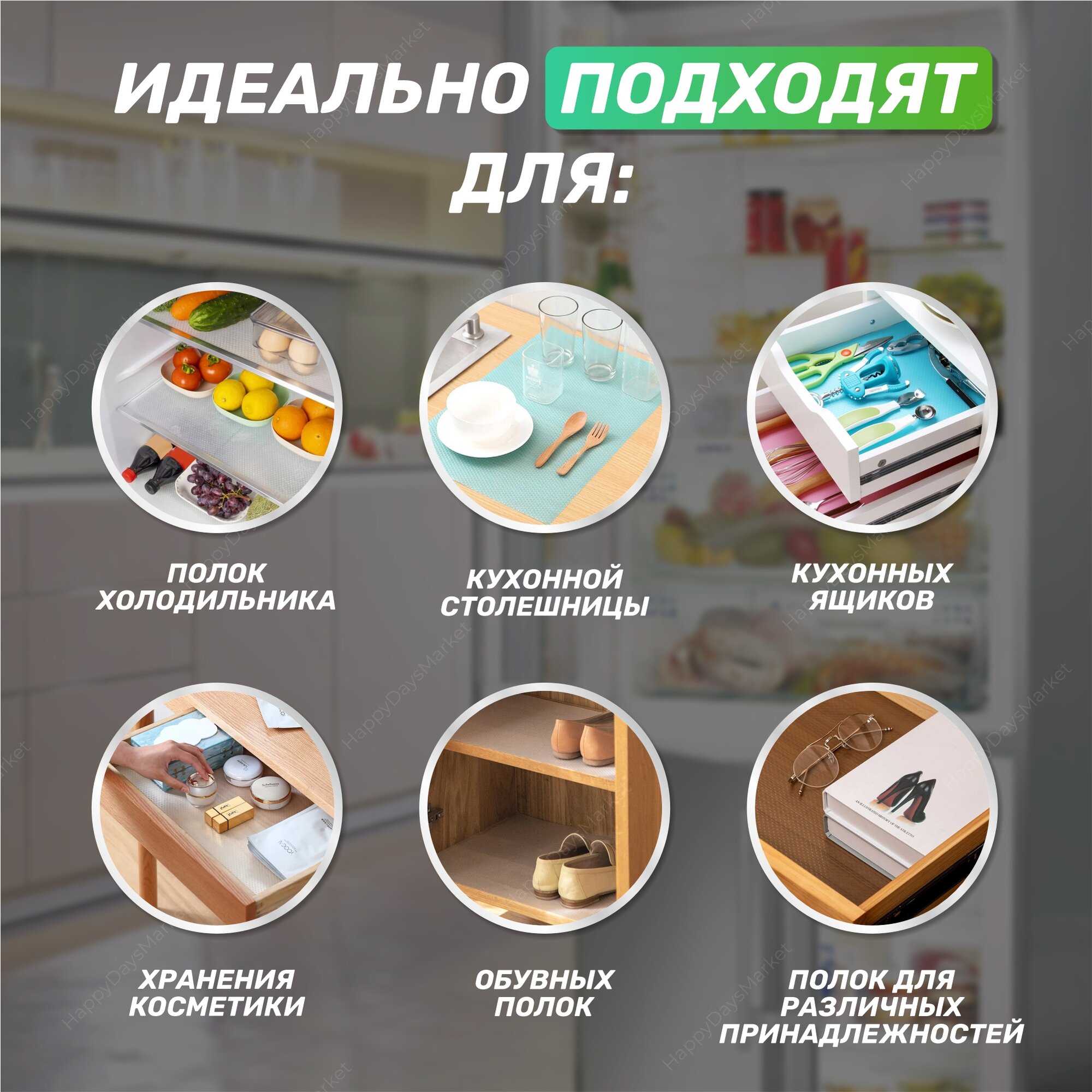 Силиконовые коврики для кухонных полок, шкафов, ящиков, холодильника. Антибактериальные, защитные, противоскользящие. 6шт.