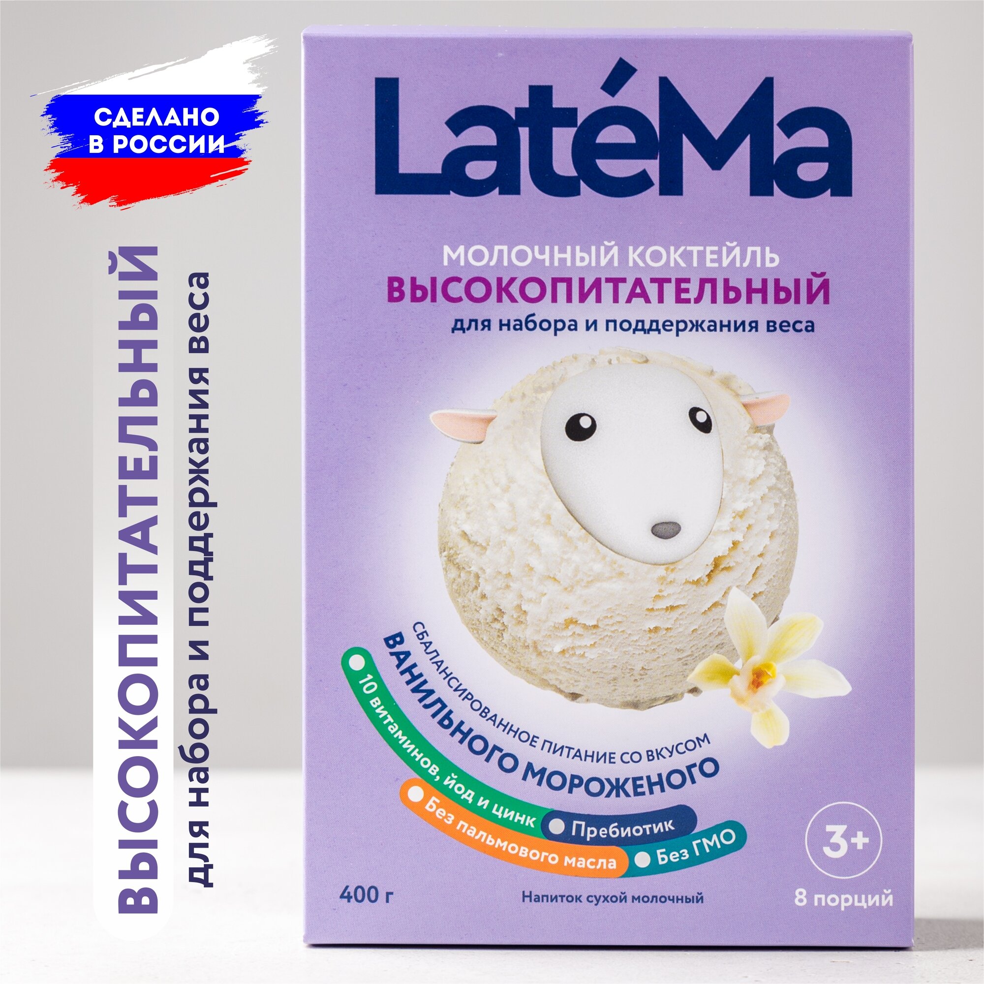 10 цен на Детская смесь LateMa (Латема) для приготовления молочного коктейля высокопитательная со вкусом ванильного мороженого; для детей от 3-х лет 400 г
