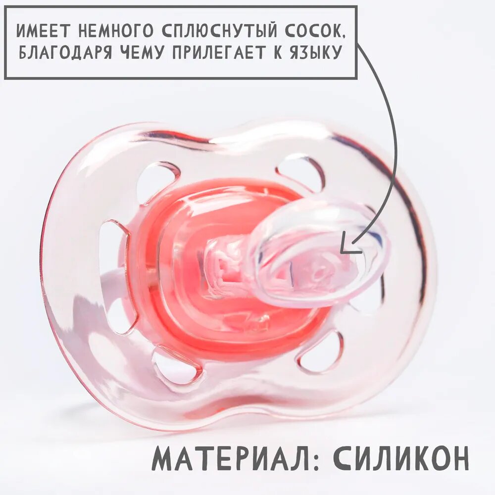 Соска - пустышка с колпачком, ортодонтическая, силикон, от 6 мес, цвет розовый, для детей и малышей, Mum&Baby информация: