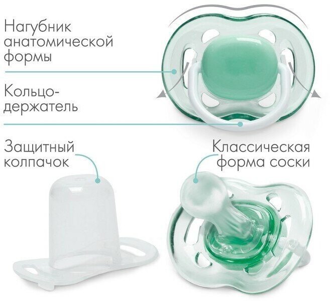 Соска - пустышка классическая, силикон, +6мес, с колпачком, цвет зеленый информация: