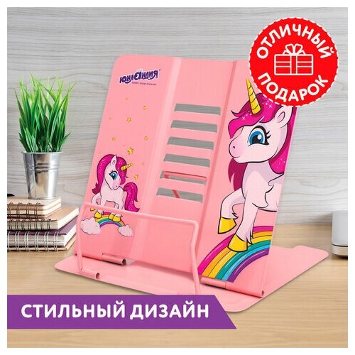 Подставка для книг, учебников, журналов настольная школьная Юнландия Neon Unicorn, регулируемый угол наклона, металл, 237575