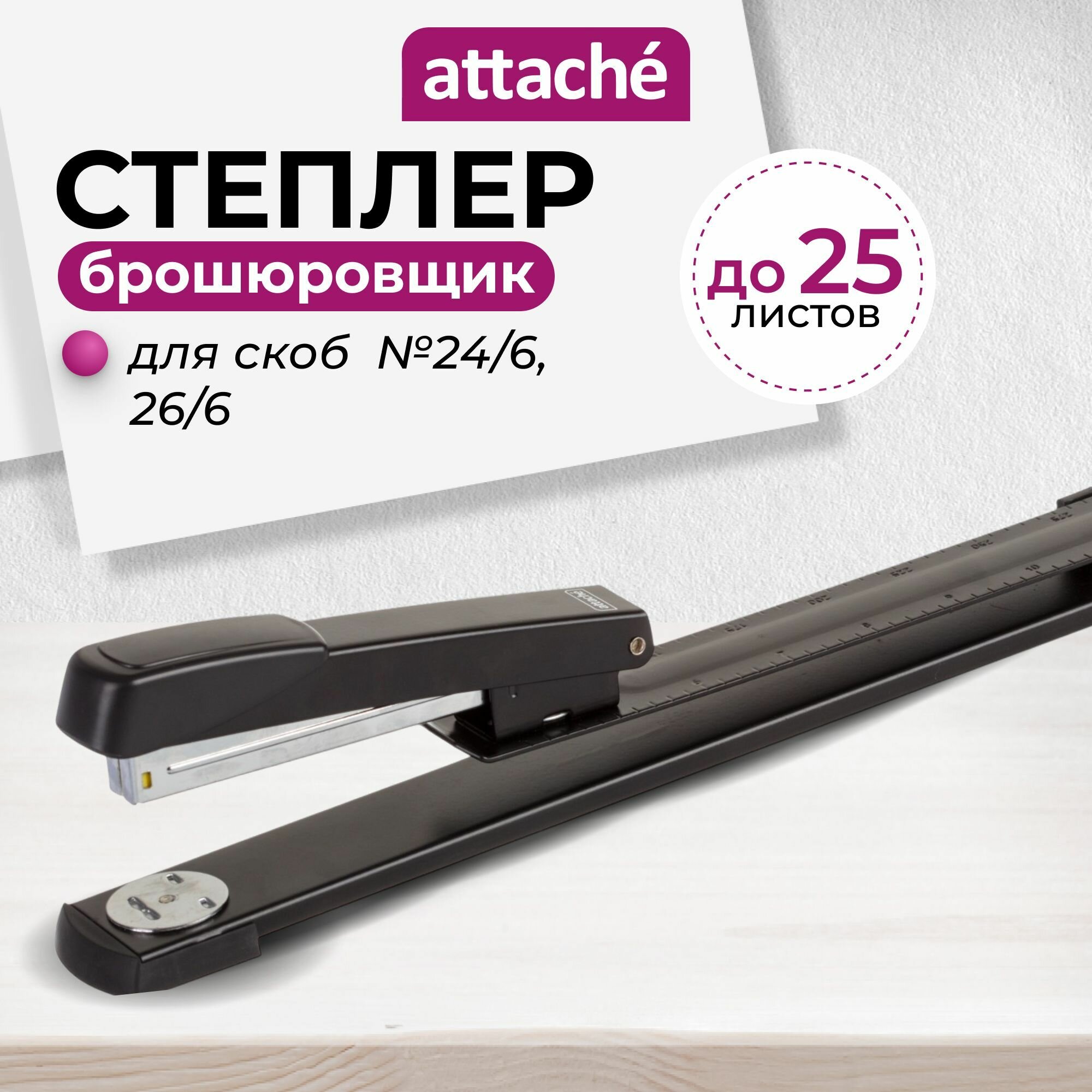 Отзывы на Степлер канцелярский для брошюр Attache, скобы № 24/6, 26/6, до 25 листов