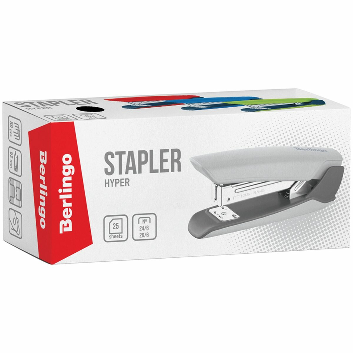 Степлер Berlingo №24/6, 26/6 "Hyper" до 25л., пластиковый корпус, красный