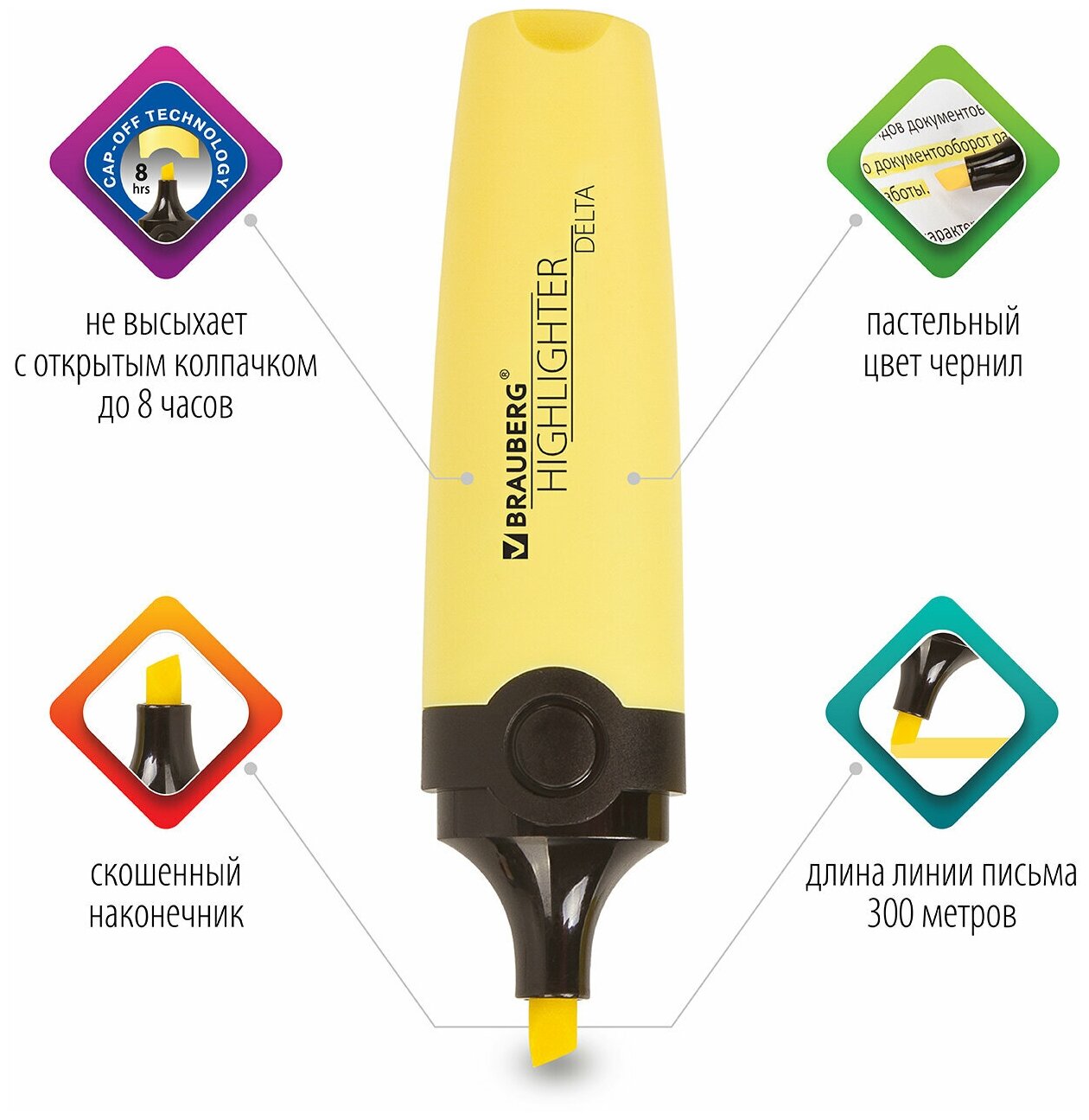 Набор текстовыделителей BRAUBERG 4 шт, ассорти, "DELTA PASTEL", линия 1-5 мм, 151735 информация: