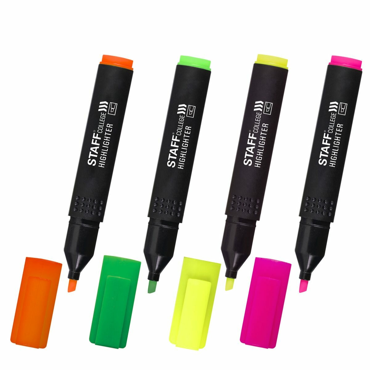 Маркер-текстовыделитель (для выделения текста) набор из 4 шт., Ассорти, Staff College Stick, линия письма 1-4 мм