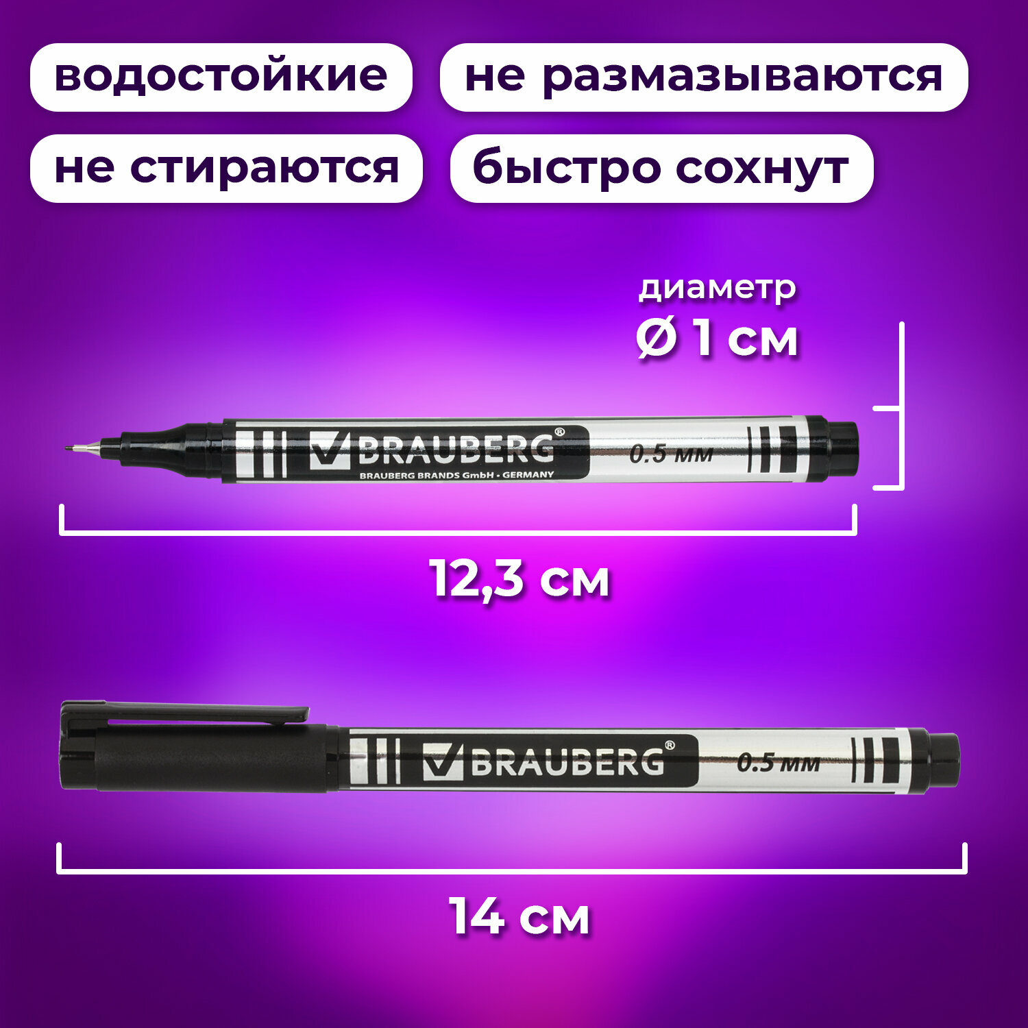 Маркер перманентный черный тонкий 0,5 мм комплект 12 штук, BRAUBERG, 880245 информация: