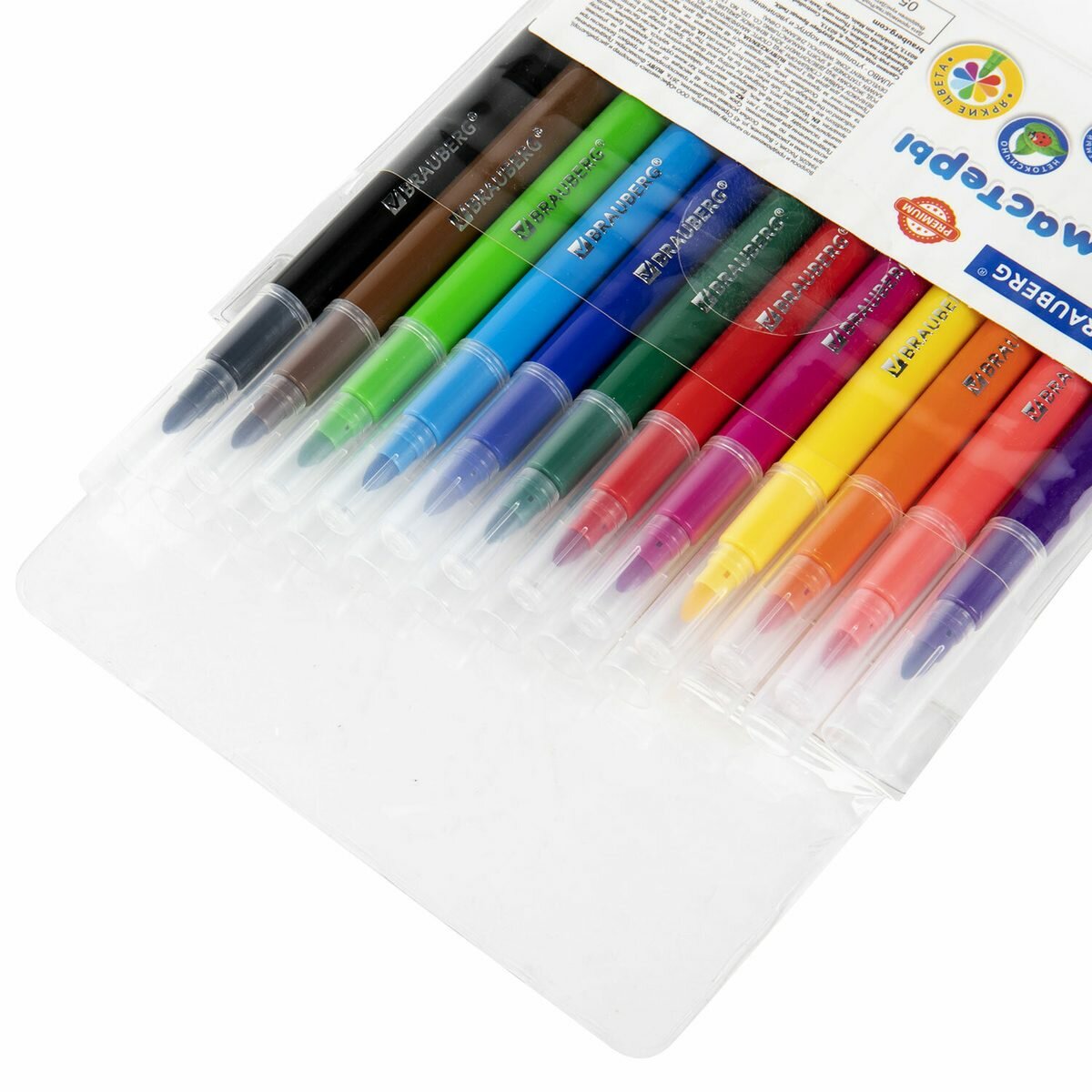 Набор фломастеров 12 цветов Brauberg Premium (линия 2мм, смываемые, утолщенные) ПВХ-упаковка, 12 уп. информация: