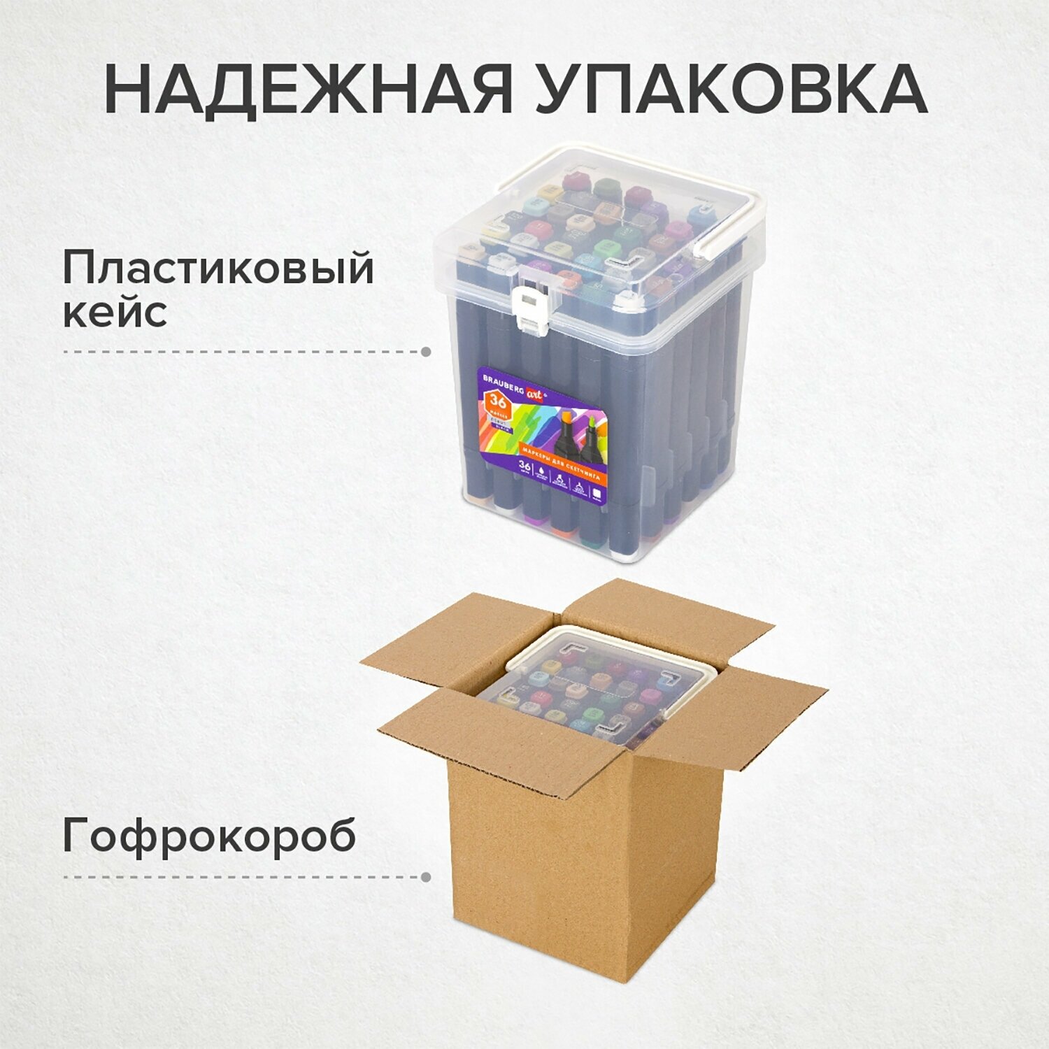 Маркеры для скетчинга двусторонние BRAUBERG ART DEBUT "BLACK" набор 36 шт, пластиковый кейс, 152129 информация:
