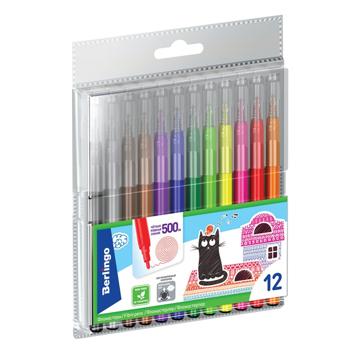 10 цен на Фломастеры BERLINGO Жил-был-кот 12 цветов, смываемые чернила