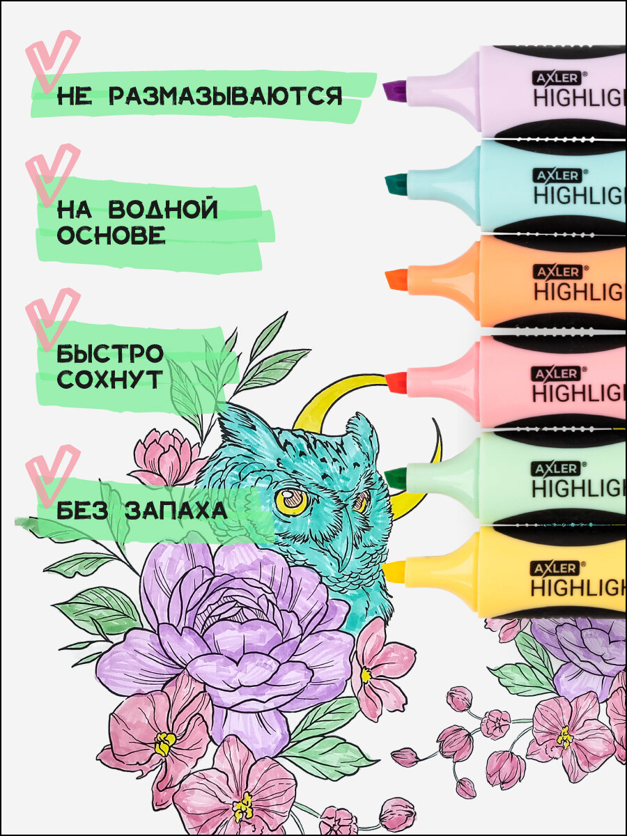 Отзывы на Текстовыделители AXLER, пастельные маркеры выделители для текста, набор 6 шт